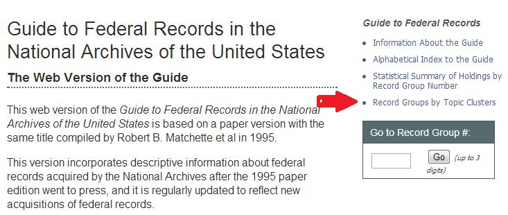 1. At the NARA website homepage click on “Research our Records, then click on “Guide to Federal Records”