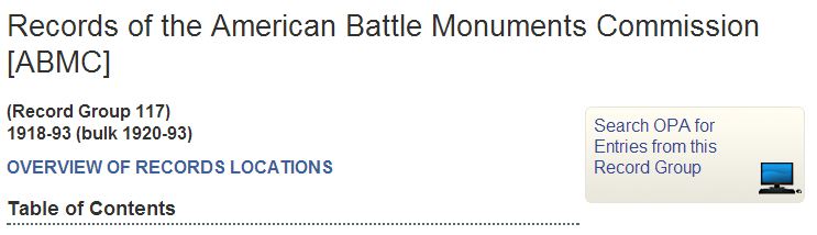 4. View the Record Groups within the Genealogical topic cluster and make a note of the RG# you would like to explore. Today we will explore RG#117, American Battle Monuments Commission.