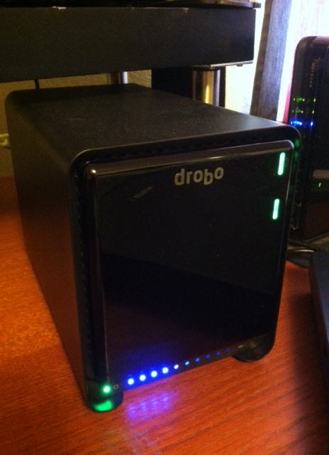 Drobo to the rescue!  We invested in an external hard drive caddy made by Drobo.  I am not a real computer geek and don’t know all the right terminology, but I can explain what it does:  I allows me to insert up to five different drives into it, and it replicates the files on all the drives.  It’s called redundancy.  So if one drive fails the other ones have the files, and it has it’s own internal battery, too, just in case of a power outage.