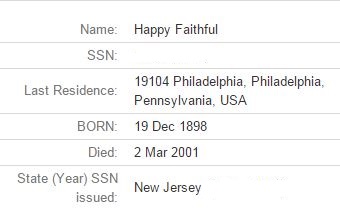6.  Happy:   Not surprisingly, Happy lived to be 103.  I learned this on the Social Security Death Index. You knew he was Happy, but did you know he was Faithful, too?  No wonder he lived to be 103!