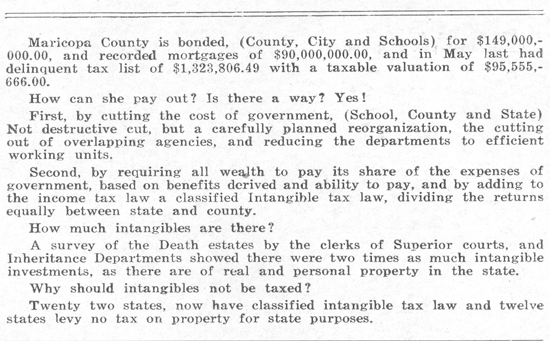 Frank T. Pomeroy campaign card, Arizona State Senate (back