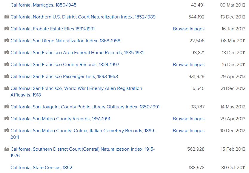 California collections at Familysearch.org as of 17 Jul 2013