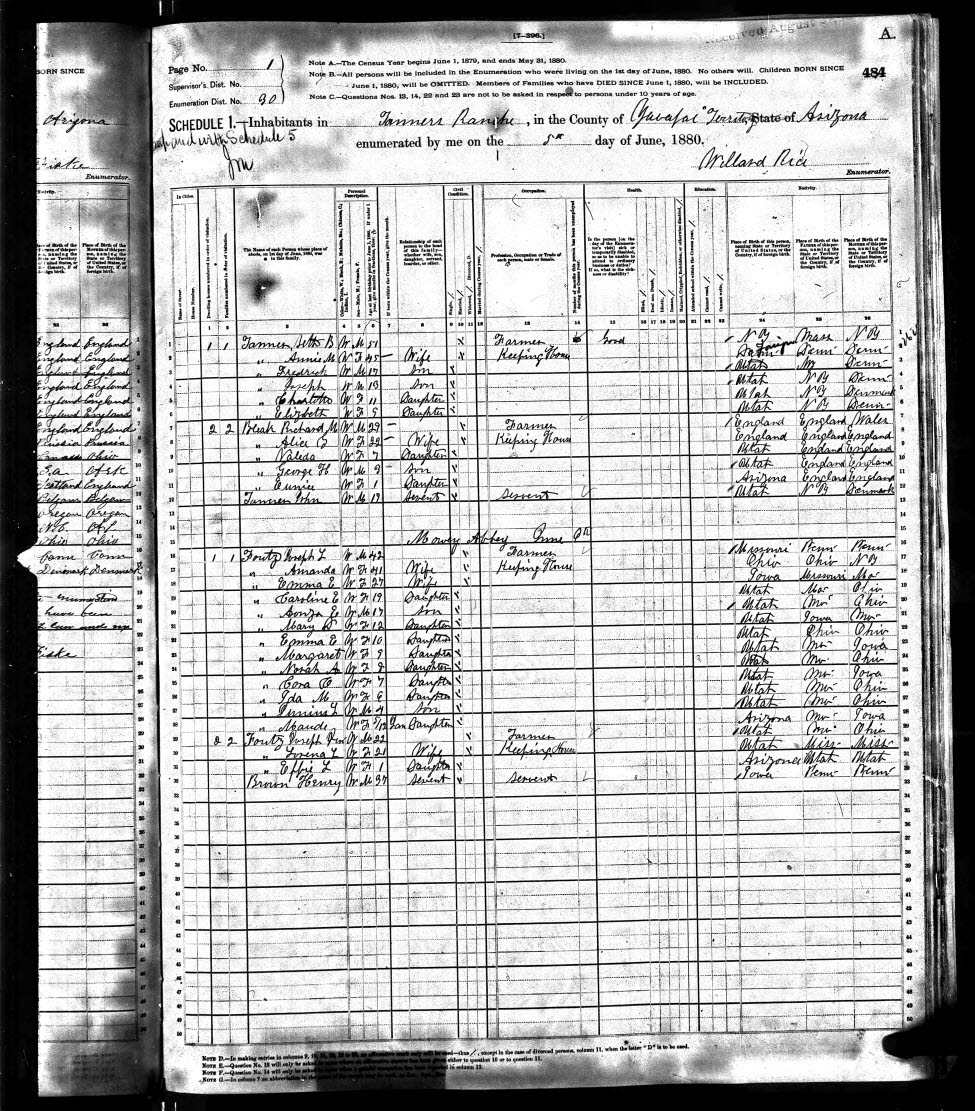 In 1880 the Seth B. Tanner family was enumerated on the census for Yavapai County, living at “Tanner’s Ranch”, while the Joseph L. Foutz family was enumerated right after them, living at “Mowey Abbey”. This was really Moenave or Moa Avi Springs, just west of the Tuba City present-day site: