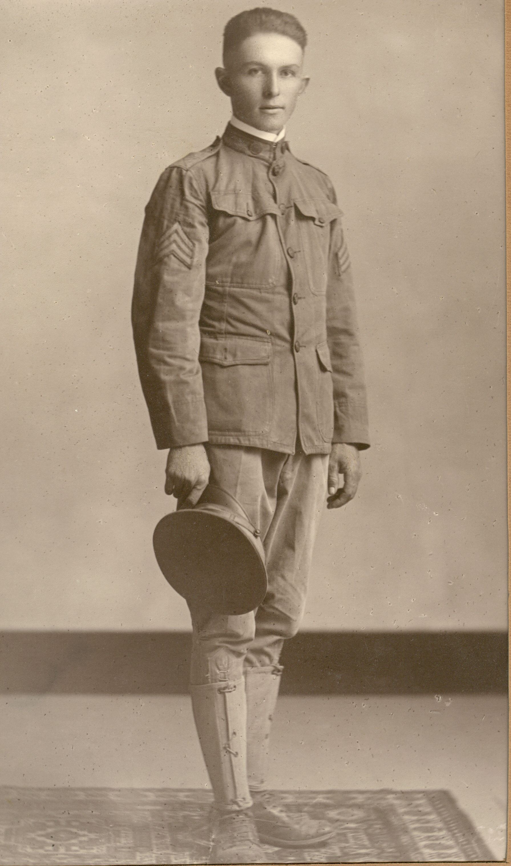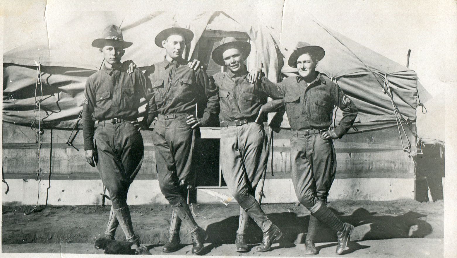 He was a good student and in high school [and] was in a group of four boys who were at the head of their class and whose grades were above 95% for the four years. A teacher in High School kindled his ambition to become an architect and so he entered Kansas State College in Manhattan, Kansas. He completed one year and returned home to work for a year to save money for further college. He joined a company of the Arizona National Guard and went to camp that summer at Fort Huachuca. This started a military career that was to last over 38 years. That next spring his company was ordered into active duty on the Mexican border following the raid on Columbus, New Mexico by Pancho Villa and his _______.  His regiment, the 1st Arizona Infantry, was not in Pershing’s Expeditionary force but was one of several units guarding the border. There was a lot of unrest among the Mexican people along the border many of whom looked at Pancho Villa as a hero and liberator and by the same token resented the expedition into Mexico that ended his threat against the U.S. By this time he had been promoted thru he enlisted ranks to the grade of platoon sergeant and when the 1st World War started in April 1917 his regiment was moved to Camp Kearney in California and became a member of the 40th NG ___. After a winter of training recruits he applied for and was accepted in Officers Training School where he earned a commission as 2nd Lieutenant Inf. U.S. Army. He was transferred to Camp P___, Ark. Briefly then thru a small arms school where he qualified as an instructor at Camp Perry, Ohio and then to Camp Taylor, Kentucky where he was in command of a company in a regiment of draftees training for overseas.