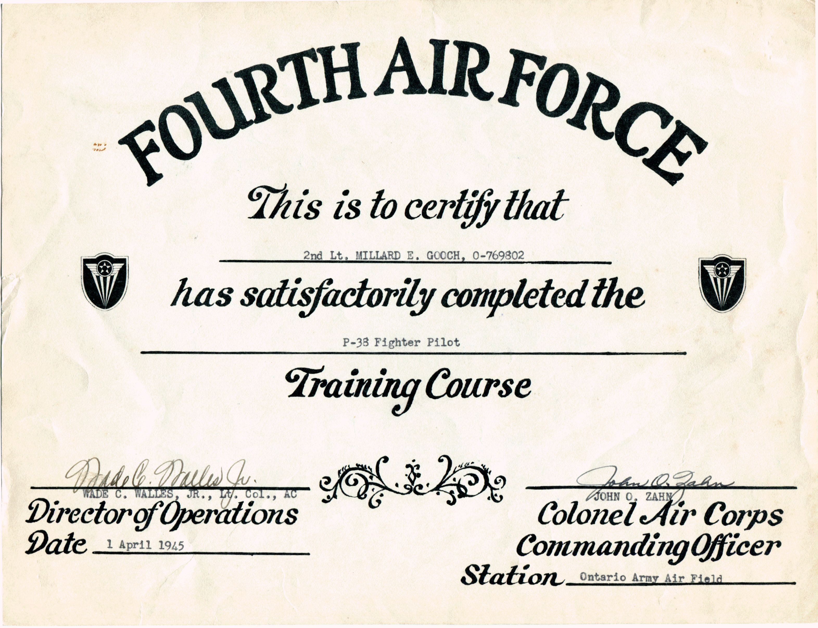 My father Millard Earl Gooch, passed away in 2006, and my mother, Ann Francene Pomeroy Gooch, in 2003.  I visited their graves in Claremont, California yesterday.  Today, since it is Veteran’s Day, I would like to honor my father by posting a few pictures representing his military service in the Army Air Corp during World War II.